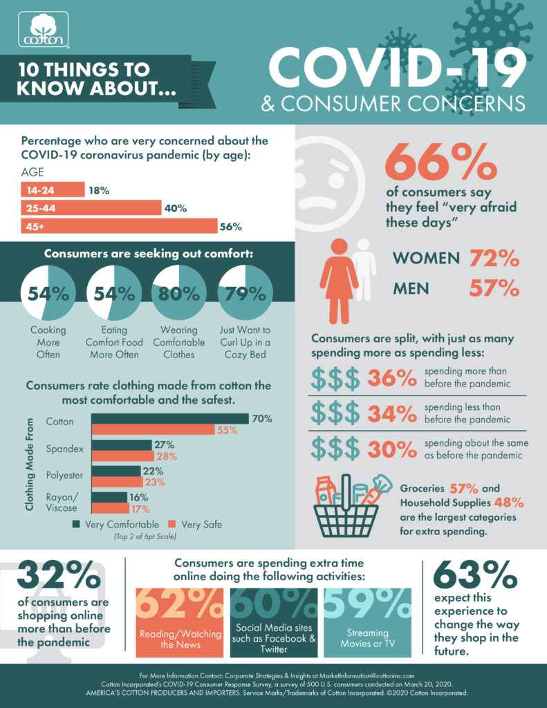 Home > Articles > 10 Facts About COVID-19 & Consumer Concerns10 Facts About COVID-19 & Consumer Concerns March 25, 2020Catherine SalfinoCommodity EconomicsConsumer CommentsShopping 10 Facts About COVID-19 & Consumer Concerns Cotton Incorporated Press Release About COVID-19 & Consumer Concerns Casual WorkplacesEvolving Ecommerce