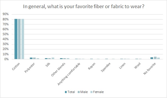 Perhaps manufacturers should consider that in general, 81 percent of consumers say cotton is their favorite fabric to wear, according to the Cotton Incorporated Lifestyle Monitor™ research. Beyond that, 77 percent feel better quality garments are made from all natural fibers such as cotton, and 66 percent of shoppers are wiling to pay more for clothes made from natural fibers.