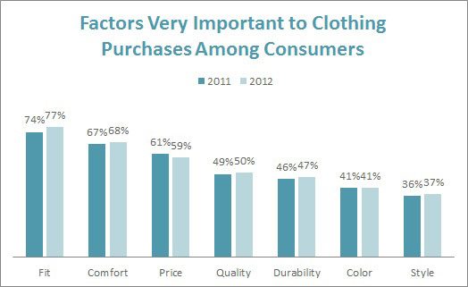 Normally, when shoppers are apparel shopping, the Monitor shows top purchasing factors are fit (77%), comfort (68%), and then price (59%).   For a good chunk of consumers, a trending style that makes them look good beats a magic price point.