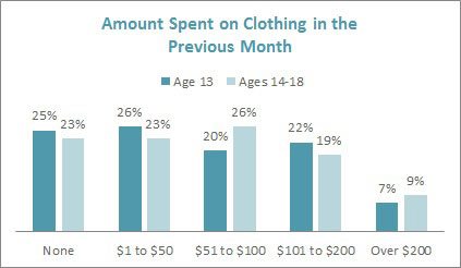 The NPD Group reports tween apparel spending between August 2012 and July 2013 rose 11.2%, to $14.4 billion.  One of the top times to buy kids’ clothes is the Back-to-School season.  For this 2013/2014 school year, shoppers planned to spend an average of $231 on Back-to-School clothes, relatively flat from last year ($227), according to the Cotton Incorporated Lifestyle Monitor™ Survey.  On average, tweens at the upper end of the age group (13-year-olds) spend approximately $69 on clothes each month.