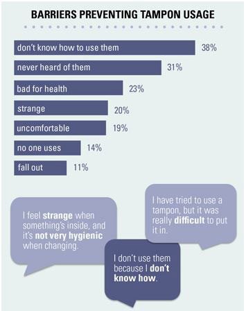 Although tampon usage is rare in Asia, the Japanese tampon market is relatively strong due to several successful brand marketing campaigns to educate the Japanese consumer and spur tampon consumption2. Because more than 1 in 4 non-tampon users (27%) say they would be likely to try tampons if they were educated on how to use them, pairing tampon marketing with an educational campaign may be as effective among Chinese consumers as it was in other developing markets. Likelihood to try tampons if educated also rises among those who say they do not use tampons because they have never heard of them or they do not know how to use them (33%).