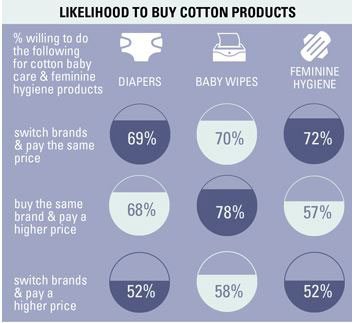 - Increase cotton offerings in hygiene products to meet the needs of female consumers – the majority are willing to pay more for cotton.