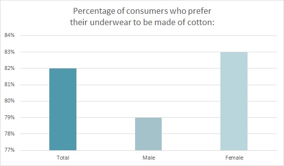Brands and retailers should note that the majority of men and women (70 percent) are willing to pay a slightly higher price to keep cotton from being substituted with synthetic fibers such as polyester in their underwear and intimates.
