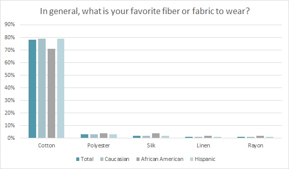 And when it comes to their favorite fabric to wear, 79 percent of Hispanic consumers place cotton at the top, according to the Monitor™ research. This far outpaces polyester (3 percent), silk (2 percent), and rayon (1 percent).