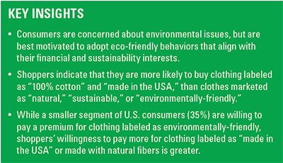 Environmental activism among consumers has steadily progressed due to more individuals adopting eco-friendly habits. Key InsightsConsumers’ eco-sensitive attitudes and behaviors can be understood as a form of enlightened self-interest. More than two out of three consumers (70%) agree that they are happy to be environmentally-friendly as long as it saves them money. Financial incentives can also play a significant role in shoppers’ decisions to purchase apparel. More than 8 out of 10 consumers (86%) say that knowing clothing features and care factors could ultimately save them money is very influential in their decisions to purchase.