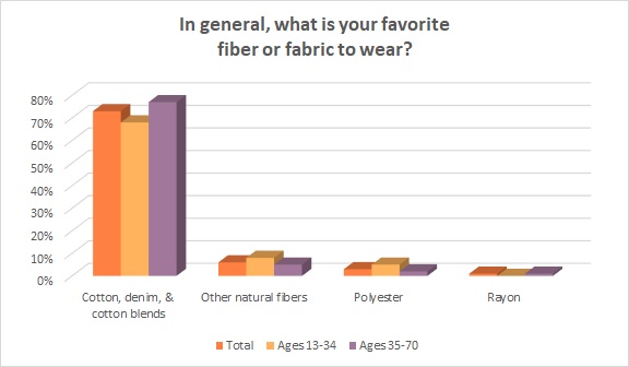 Further, the majority of U.S. consumers (73 percent) say cotton, denim, and cotton blends are their favorite fabric to wear, according to Cotton Incorporated’s Lifestyle Monitor™ Survey. And fully 72 percent of shoppers say they would pay more for apparel made from natural fibers like cotton.