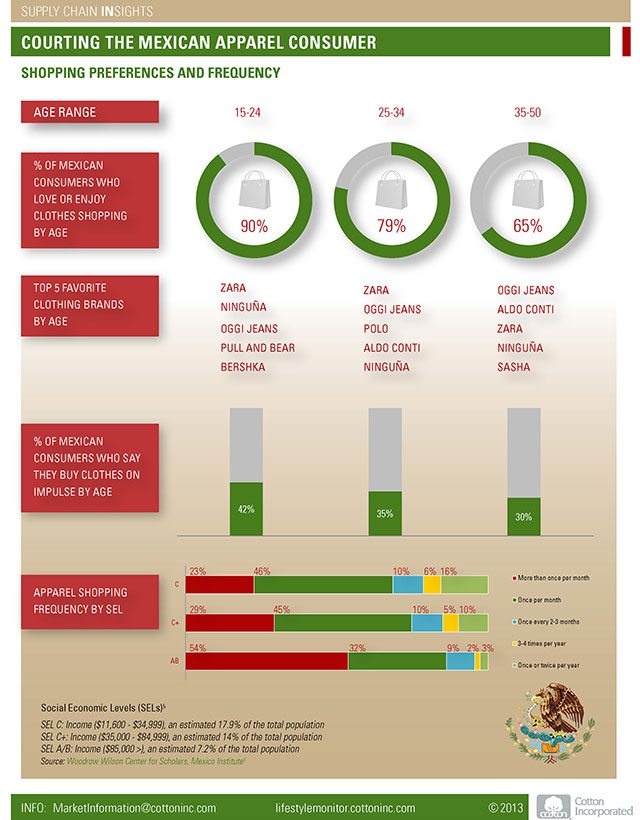 | Click images to learn more about Mexico consumer shopping preferences, shopping frequency, apparel prices and fiber preference. |