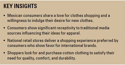 Recent inroads into the Mexican apparel market by foreign retailers such as American Eagle, Gap, and H&M reflect significant movements to garner consumer brand awareness and loyalty in this expanding apparel market. Cotton Incorporated’s Mexican Consumer Survey, a study of shoppers in Mexico City, exposes a confident consumer base that enjoys clothes shopping, favors quality apparel, and has distinct preferences, influences, and expectations.