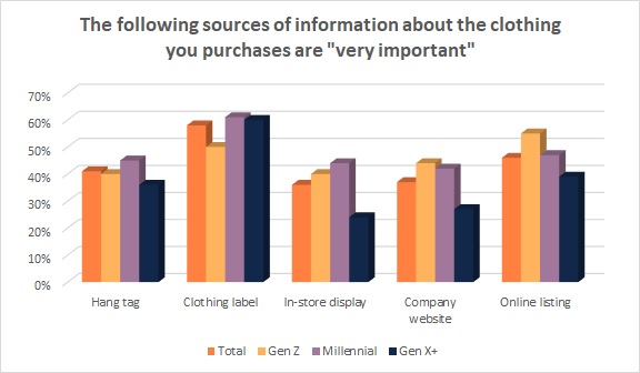 And aside from these bits of knowledge that shoppers find helpful, there is a laundry list of information consumers expect brands and retailers to provide. The majority of consumers (61 percent) expect brands and retailers to provide information on garment care, according to the 2023 Clothing Label Survey. That number increases to 75 percent among Gen X.