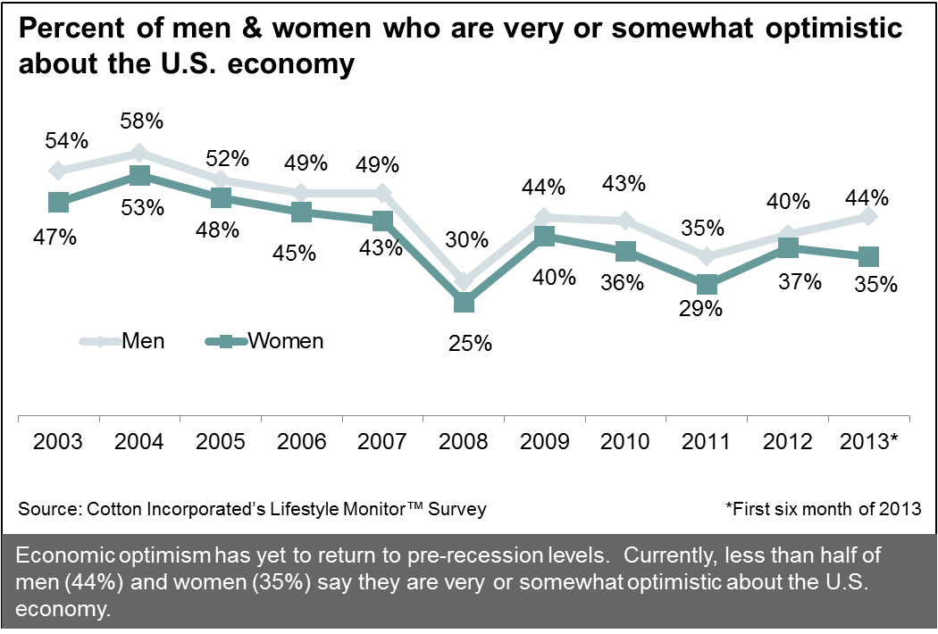 Home > Commodity Economics > Economic Optimism Among U.S. Men and WomenEconomic Optimism Among U.S. Men and Women August 20, 2013Commodity Economics Factors for Consumers Purchasing DenimFactors for Women Purchasing Denim
