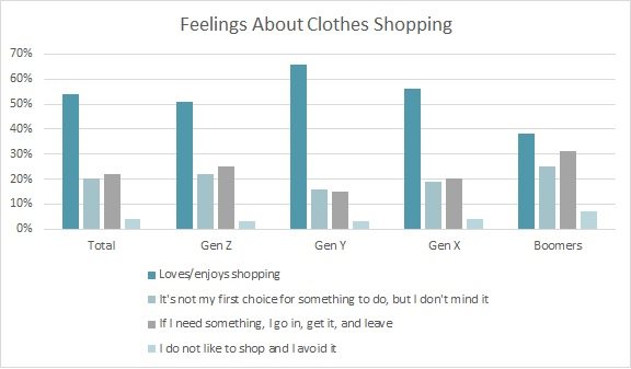 For apparel retailers, the good news is just over half (51 percent) of all Gen Z consumers love or enjoy shopping, according to the Monitor™ survey. Unfortunately, that’s significantly less than Millennials (66 percent). However, since Millennials are older and more established, it’s possible that Gen Z’s views toward shopping may change once they have regular income and lines of credit.