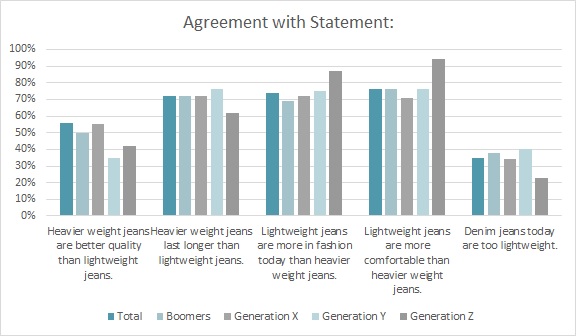 Still, the Monitor™ research shows 3 in 4 Gen Z consumers (75 percent) prefer a mix of light- and heavier weight jeans in their wardrobes.