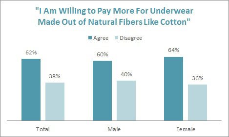 Indeed, the Monitor finds 66% of shoppers would in fact be bothered if stores and brands substituted synthetic fibers for cotton in their underwear, and (62%) say they are willing to pay a premium to keep cotton from being substituted with synthetic.