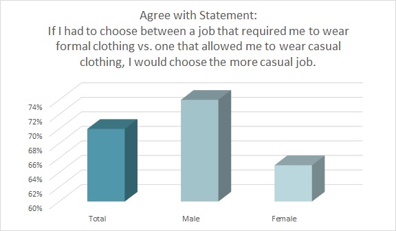 Among people who work outside of their home, 7 in 10 (70 percent) say if they had to choose between a job that required them to wear formal clothes versus one that permitted casual clothes, they would choose the one with a casual dress code, according to the Monitor™ research.