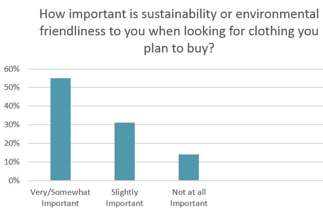 Today’s consumers care about sustainability/environmental friendliness so much that they consider it to be important to their purchase. Nearly 9 out of 10 shoppers (86 percent) say it’s significant when they’re looking for clothes they plan to purchase, ranging from “slightly important” (31 percent), to “somewhat important” (36 percent) to “very important” (19 percent), according to Cotton’s 2020 Spring U.S. Coronavirus Response Survey. These results are higher compared to a more recent September Lifestyle MonitorTM survey where 49 percent say environmental friendliness is an important factor in their clothing purchase decision.