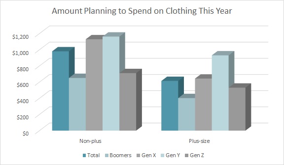 On average, extended size Millennials and Gen Z consumers shop for clothes 2.4 and 2 times per month, respectively, which mirrors that of their non plus-size counterparts, according to the Cotton Incorporated Lifestyle Monitor™ Survey. But extended size Millennial shoppers spend $930 per year on new apparel, compared to $1,162 by their non-plus counterparts. Additionally, Gen Z shoppers spend $531 per year on new clothes, compared to $711 by non-plus customer, reflecting an opportunity across the apparel industry.