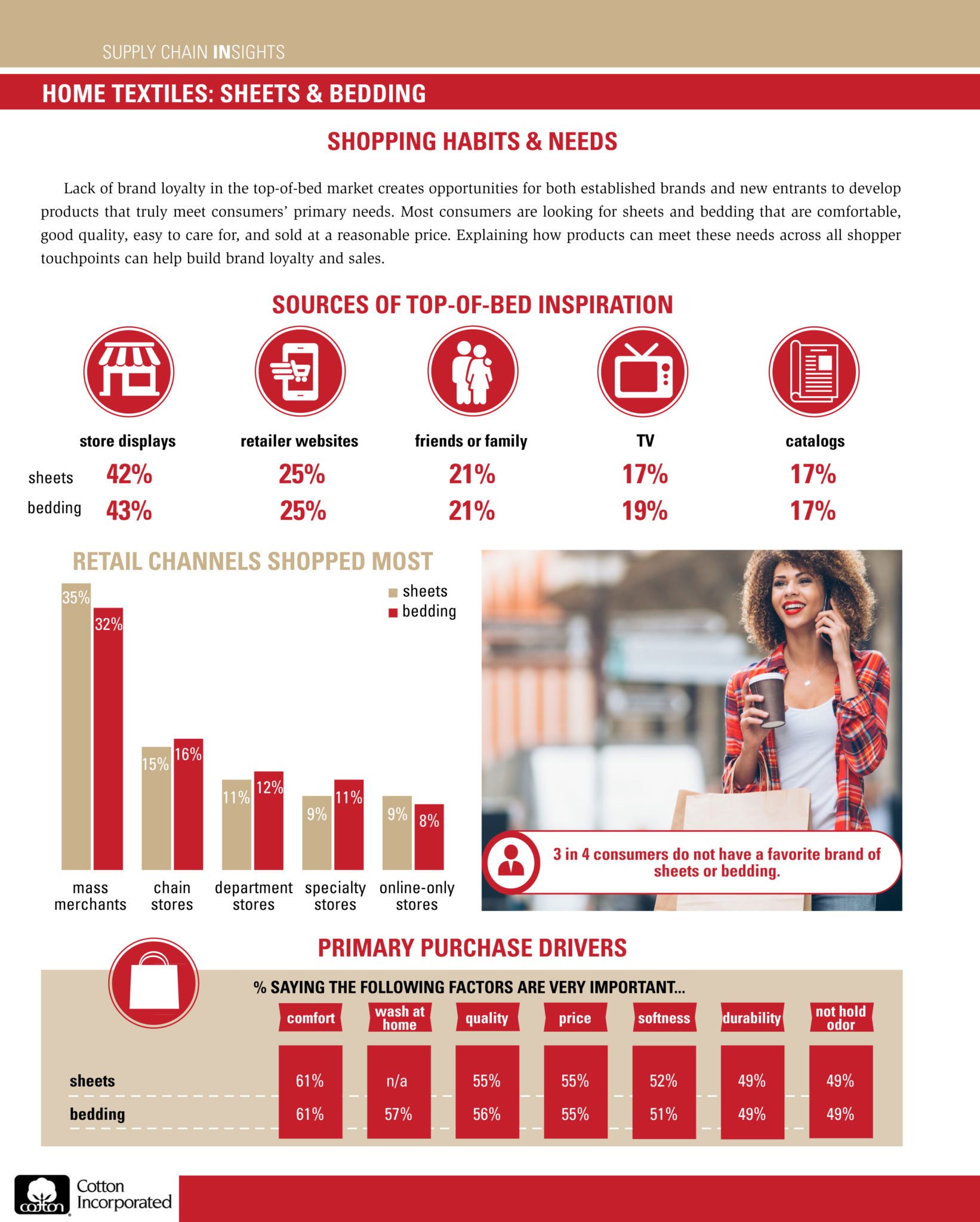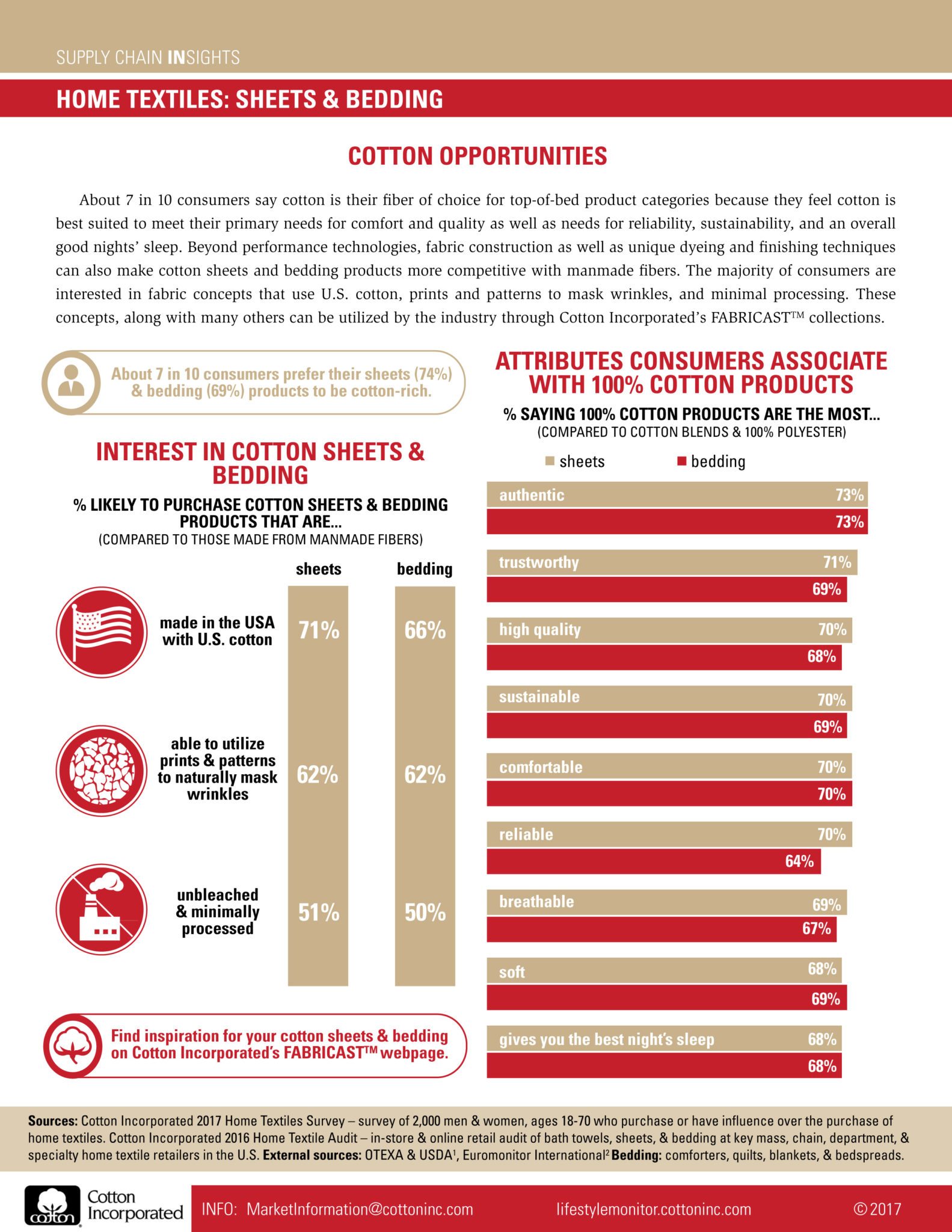 About 7 in 10 consumers say cotton is their fiber of choice for top-of-bed product categories because they feel cotton is best suited to meet their primary needs for comfort and quality, as well as needs for reliability, sustainability, and an overall good night’s sleep.