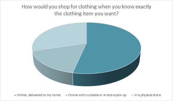 But consumers aren’t planning to buy all their clothes online. The Cotton Incorporated 2021 Coronavirus Response Survey (Wave 5) found that if shoppers know exactly clothing item they want, most (53 percent) will buy it online and have it delivered to their home. But if they’re unsure of the size or what cut will fit best, 69 percent would prefer to shop in a physical store.