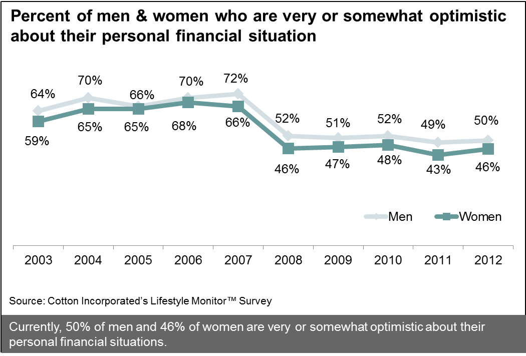 Home > Commodity Economics > Men and Women Optimistic About Personal FinancesMen and Women Optimistic About Personal Finances July 22, 2011Commodity Economics Consumers Optimistic About Their Personal FinancesWillingness to Pay More For Enviro-Friendly Clothing
