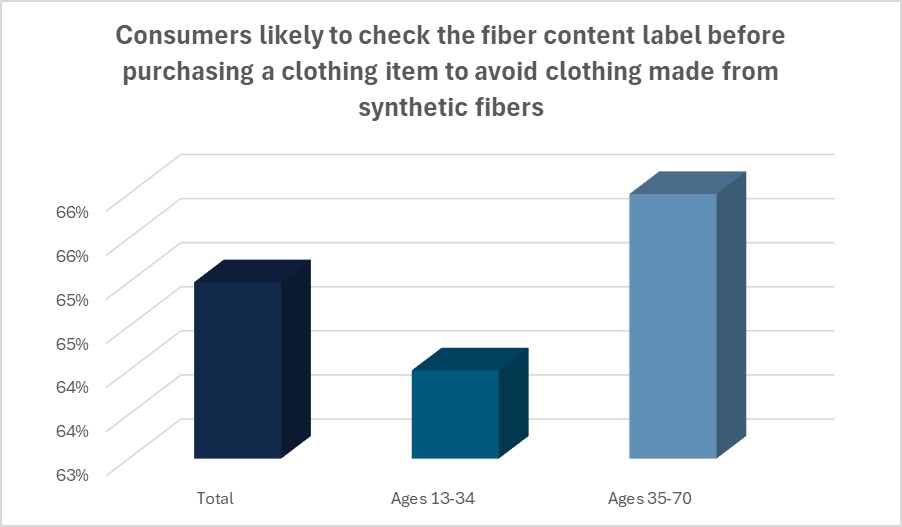 That’s a goal that’s appreciated by consumers. As it stands, the majority of consumers (65 percent) say they are likely to check fiber content labels before purchasing a clothing item to avoid garments that are made from synthetic fibers, according to the Cotton Incorporated 2024 Lifestyle Monitor™ Survey. Further, nearly 3 in 10 shoppers (29 percent) say they’re bothered that brands and retailers are using synthetic fibers in their clothing.