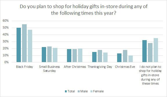 And during the holidays, promotional events like Black Friday continue to draw shoppers. This year, half of all holiday shoppers planned to shop for gifts in-store on Black Friday (up significantly from 44 percent in 2015, followed by Small Business or Local Saturday (22 percent — up significantly from 16 percent in 2015), and the day after Christmas (19 percent), according to the Cotton Incorporated Lifestyle Monitor™ Survey. Nearly 1 in 2 holiday shoppers planned to shop for gifts online on Black Friday (49 percent — up from 43 percent last year and 40 percent in 2014) and Cyber Monday (47 percent).
