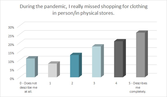 During the pandemic, 58 percent of consumers shopped for most of their clothes online, according to the Coronavirus Response Survey (Wave 6). And even though 56 percent of consumers are planning to purchase most of their clothing in-store in the future, 44 percent plan to continue to buy half or more of their clothes via ecommerce.