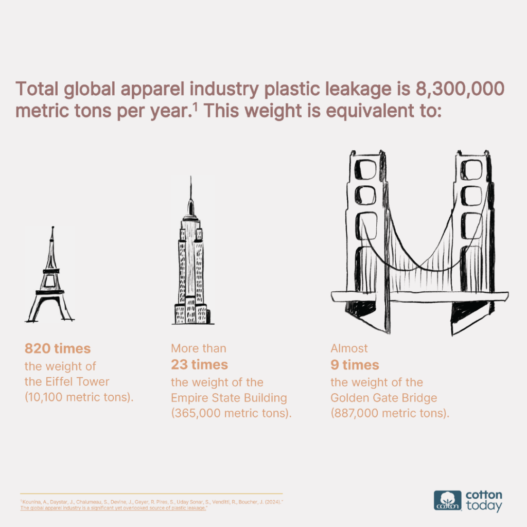 CARY, NC — Cotton Incorporated and leading researchers published a groundbreaking study in Nature Communications, titled “The global apparel industry: a significant, yet overlooked source of plastic leakage.” This research reveals synthetic clothing contributes 7.4 million metric tons of plastic pollution annually. Most of this plastic leakage arises from macroplastic waste when synthetic clothes reach the end of their life cycle. This adds to the well-documented issue of microplastic shedding during the washing and wearing of these clothes.