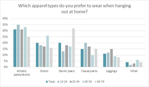 So, between the lure of the screens and money being tight, it’s understandable why there’s been a rise in comfortable athleisure apparel and interest in comfortable home furnishings. Almost 1 in 3 consumers (31 percent) prefer to wear athletic pants/shorts when they are hanging out at home, followed by shorts and denim jeans at 20 percent each, according to the Cotton Incorporated Lifestyle Monitor™ Survey.