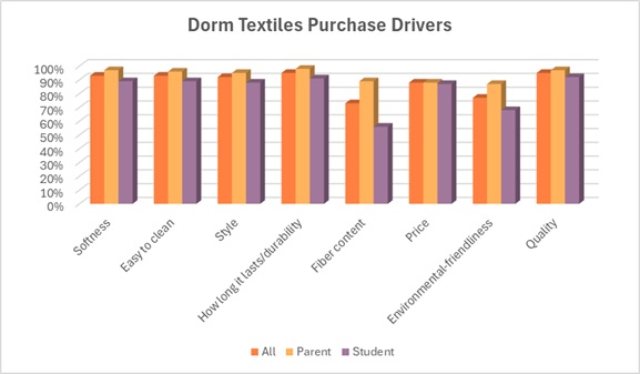 Cotton is the preferred fiber (75 percent of consumers) for dorm textiles, according to Cotton Incorporated’s 2025 Dorm Décor Survey (n=680), and most (75 percent) expect to update their textiles once or twice a year. Survey respondents say they’re looking to create a comfortable, home-like study environment that also allows students to express their personality. Quality, durability, softness, ease of cleaning and style are the key factors influencing purchase.