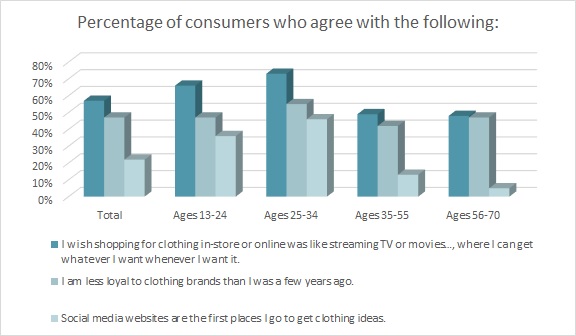Social media already has a good relationship with fashion consumers. Consider that nearly half of those ages 25-to-34 (46 percent) say social media sites are the first places they go to get apparel ideas, according to the Cotton Incorporated Lifestyle Monitor™ Survey. Among younger consumers age 13-to-24, more than one-third (36 percent) use social first.