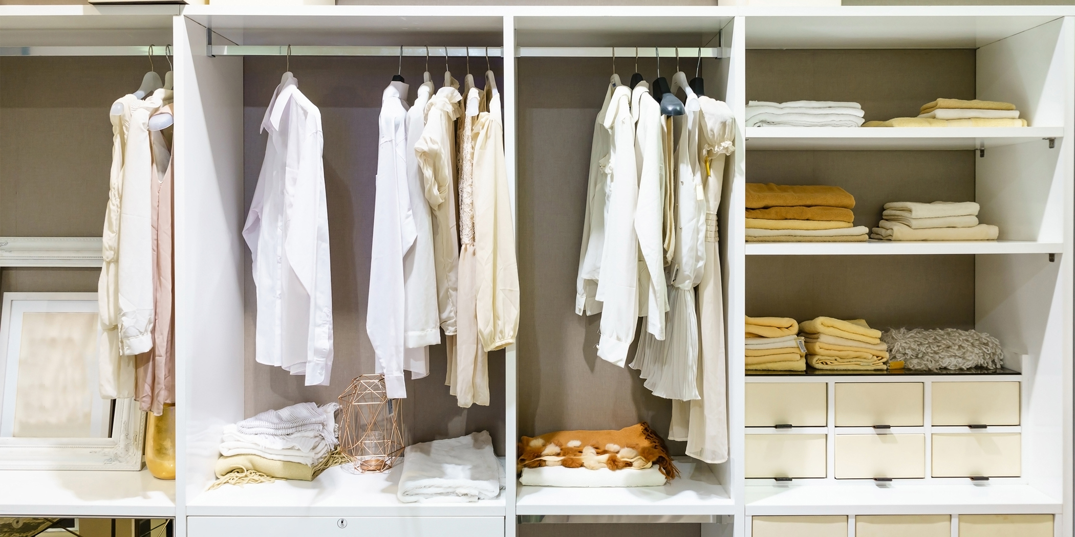 “Depending on where you live, you might need a seasonal wardrobe. People in Florida can easily get away with mostly summer pieces with a few things mixed in for the chillier months. But those of us who go through actual winters with snow and temperature[s] in the teens need to be sure to have our coats, boots, hats, and scarves on deck. When downsizing your wardrobe, focus on those types of staple pieces for each season,” Fraser says, pointing out, “Natural fibers are the way to go.”