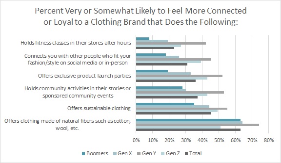 More than 3 in 5 consumers (63 percent) say they would feel more connected to or loyal to a clothing brand that offers clothes made of natural fibers, according to Monitor™ research. Additionally, the Cotton Council International (CCI) and Cotton Incorporated Global Environment Study found that “trusted brands” (69 percent) and “clothes made from natural fibers such as cotton, wool, silk, etc.” (67 percent) are the top drivers influencing clothing purchases.