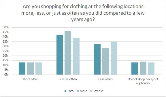 However, the good news is the majority of consumers do go clothes shopping at the mall just as often (42 percent) or even more (13 percent) than they used to, according to Monitor™ research. Additionally, nearly a quarter of consumers (24 percent) shop for most of their clothes in malls, second only to individual/freestanding stores (38 percent).