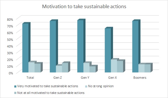 The majority of consumers (72 percent) say they’re very motivated to take sustainable actions, according to the U.S. Sustainability Research. Most (58 percent) say sustainability/environmental friendliness is an important factor in their clothing purchase decision. And when determining how sustainable a clothing item is, the top factors are if it’s made with natural fibers like cotton, wool, or silk (43 percent), as well as price (43 percent).