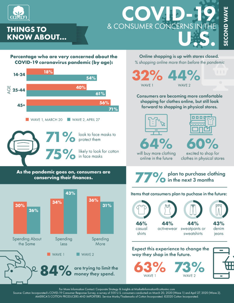 Home > Articles > Things to Know About COVID-19 & Consumer Concerns in the U.S. (Wave II)Things to Know About COVID-19 & Consumer Concerns in the U.S. (Wave II) May 5, 2020Catherine SalfinoConsumer CommentsShopping Download PDF Things to Know About COVID-19 & Consumer Concerns in the U.S. (Wave II) Staying Positive & ComfortableEcommerce Only