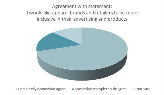 The majority of consumers (70 percent) say they would like if apparel brands and retailers were more inclusive in both their products and their advertising, according to the 2019 Cotton Incorporated Lifestyle Monitor™ Survey. And more than 8 in 10 consumers (83 percent) say they would like the fashion industry to offer additional fits and sizes.