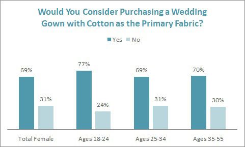 Currently, 58% of women say they prefer a silk bridal gown, according to the Cotton Incorporated Lifestyle Monitor™ Survey. However, nearly 70% would consider purchasing a gown with cotton as the primary fabric. Among these women, almost one‐third (32%) would do so for comfort, followed by “looks good” (24%), breathability (10%) and fit (9%).