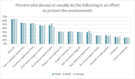 While “upcycling” clothes might still sound unusual, recycling is something that comes naturally to most people in the U.S. these days. Currently, about 3 in 4 consumers or more say they recycle (82 percent), use refillable bottles (74 percent) and purchase energy-saving appliances (72 percent) in an effort to protect the environment, according to the Cotton Council International (CCI) and Cotton Incorporated Global Environment Survey. That’s followed by consumers who say they limit home water usage (69 percent), recycle clothing or textiles (65 percent), purchase local made products (62 percent), and reduce overall consumption (55 percent).