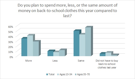 Still, more than 8 out of 10 Back-to-School apparel shoppers plan to spend the same (50 percent) or more (35 percent) on clothes this year compared to 2021, according to the 2022 Cotton Incorporated Lifestyle Monitor™ Survey. Just 10 percent expect to spend less than last year. Among high school and college students, 44 percent expect to spend more, while another 46 percent plan to spend the same as in 2021. Just 10 percent expect to spend less.