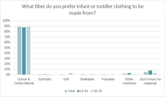 It seems makers have come to realize what parents favor: Among those who purchase infant/toddler products, close to 9 in 10 (89 percent) prefer clothes to be cotton-rich, according to the Cotton Incorporated Lifestyle Monitor™ Survey. This compares to general synthetics (1 percent) and polyester (1 percent).
