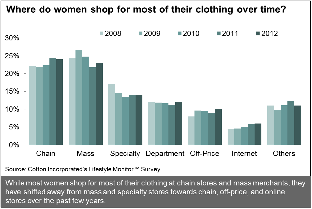Home > Consumers > Where Do Most Women Shop For Their Clothing Over TimeWhere Do Most Women Shop For Their Clothing Over Time October 10, 2012Shopping How the East is WonWhere Consumers Shop For Most of Their Clothing Over Time