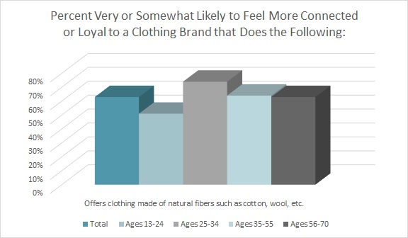 Additionally, most consumers (63 percent) say they would feel more connected or loyal to a clothing brand that offers apparel made of natural fibers such as cotton, wool, etc.